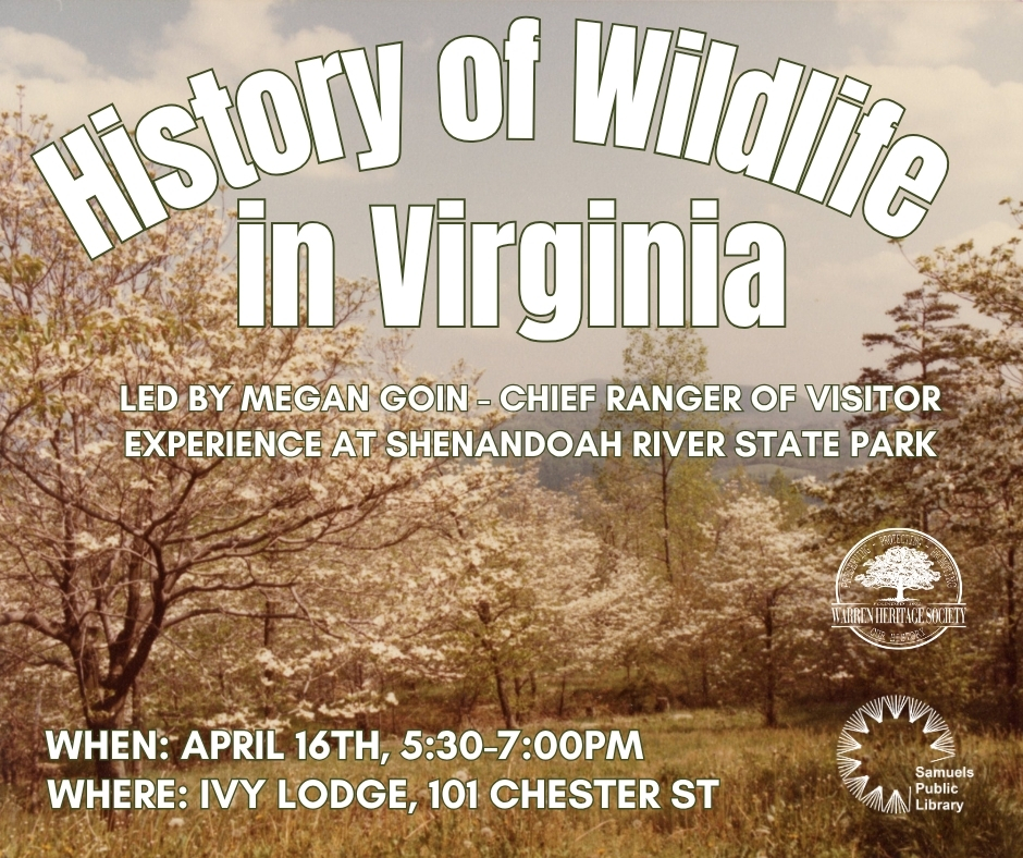 Megan Goin – Chief Ranger of Visitor Experience at Shenandoah River State Park, will be hosting the talk!
